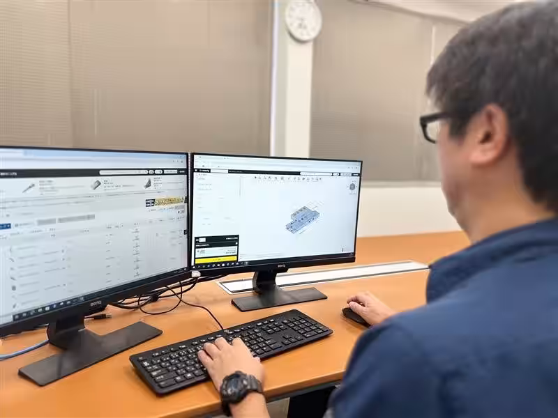 meviyの導入により、3Dデータをアップロードすることで即時に価格と納期を確認できるようになりました。これにより、計画的な発注が可能になり、設計手法の簡素化や部品の共通化が進むことで、さらに効率的な部品調達が実現しています。この取り組みにより、meviy適用領域では図面作成から部品発注までの業務工数を約90%も削減することができました。