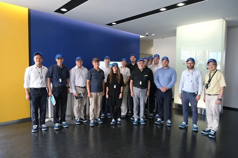 視察団は、まずミスミグループの生産技術の全体像についての説明を受け、その後製造現場を訪問しました。特に注目されたのは、「ALASHIスタジアム」と名付けられた自社開発の金型研削システムです。こちらはミクロン単位での精密加工が可能で、少量多品種の変種変量生産を実現しています。これにより、非常に高い精度が求められる金型部品の生産性とクオリティが飛躍的に向上しています。