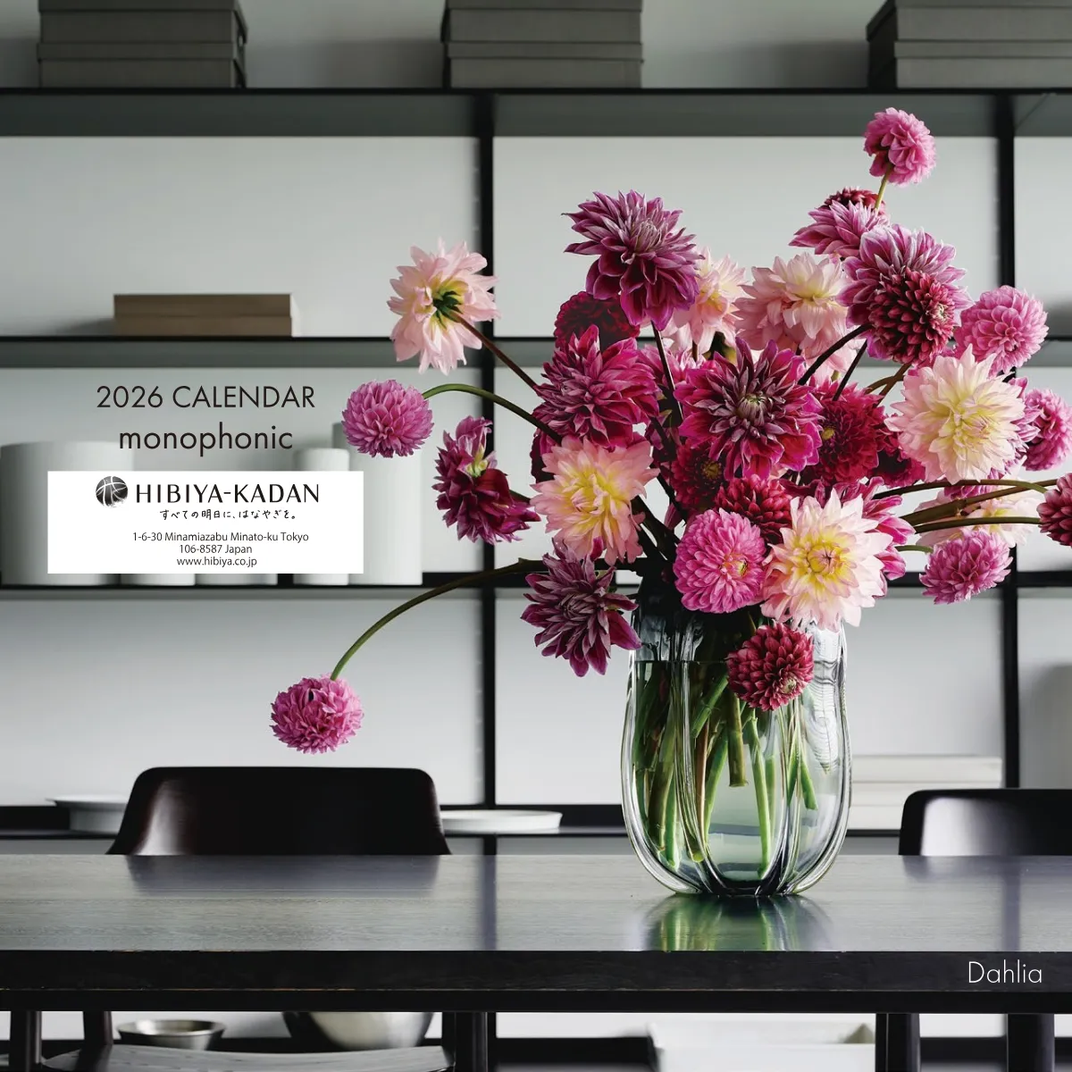 日比谷花壇グループが手掛ける2026年版オリジナルカレンダー『monophonic』が、2025年10月14日から日比谷花壇オンラインショップで予約開始となります。このカレンダーは、厳選された全国の花々で構成され、フローリスト13名の創造力によってデザインされています。