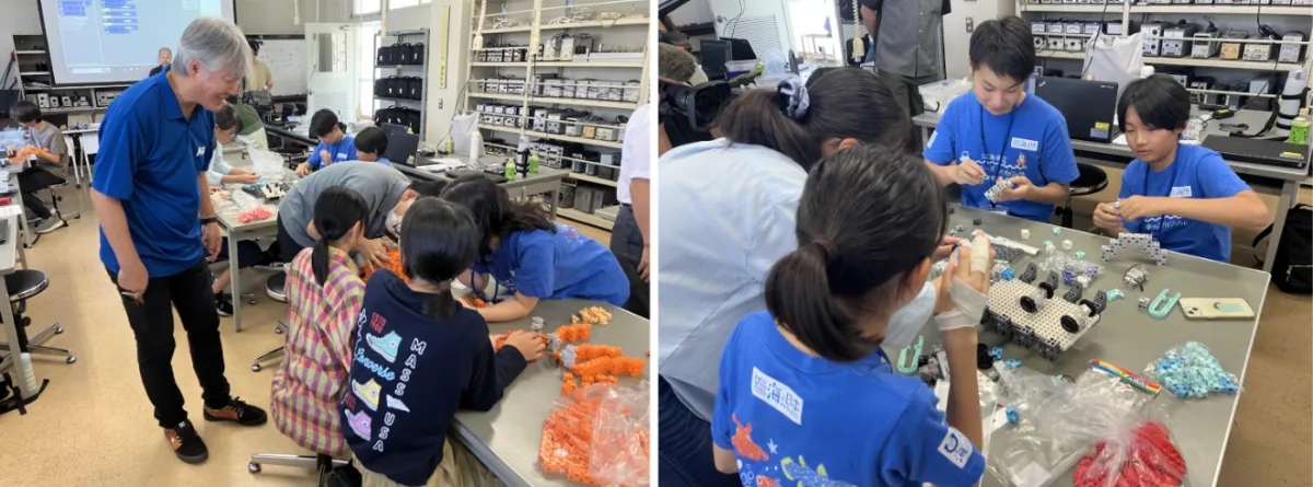 この講座には、小学5年生から中学2年生までの10名が参加しました。参加者たちは、まずプログラミングの基礎を学習し、その後に自分たちで深海生物の特性を調査して、それを模したロボットを製作するという流れでした。