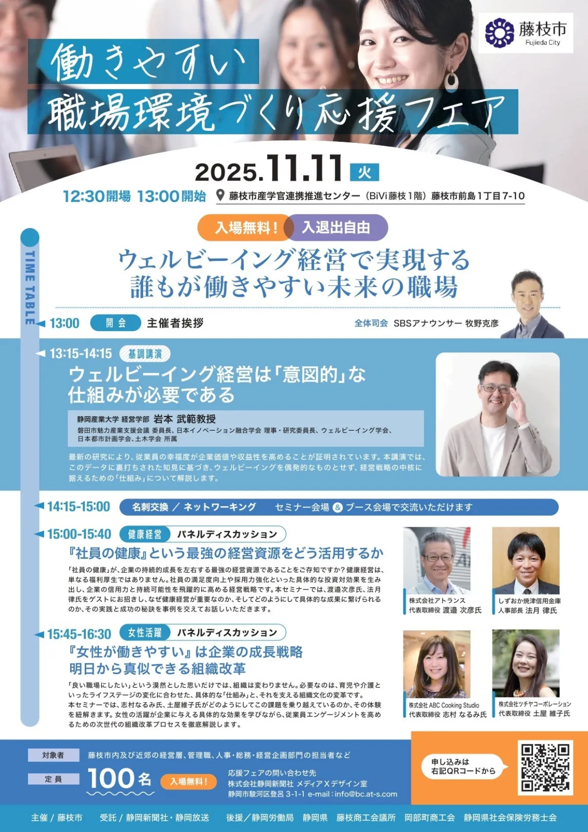 藤枝市内で働く企業の持続的な発展を支えるこのイベントは、ただの情報収集の場ではなく、参加者同士の連携や交流の機会も提供します。働く人々がより健康で充実した職業生活を送るための一歩を踏み出すきっかけになることでしょう。