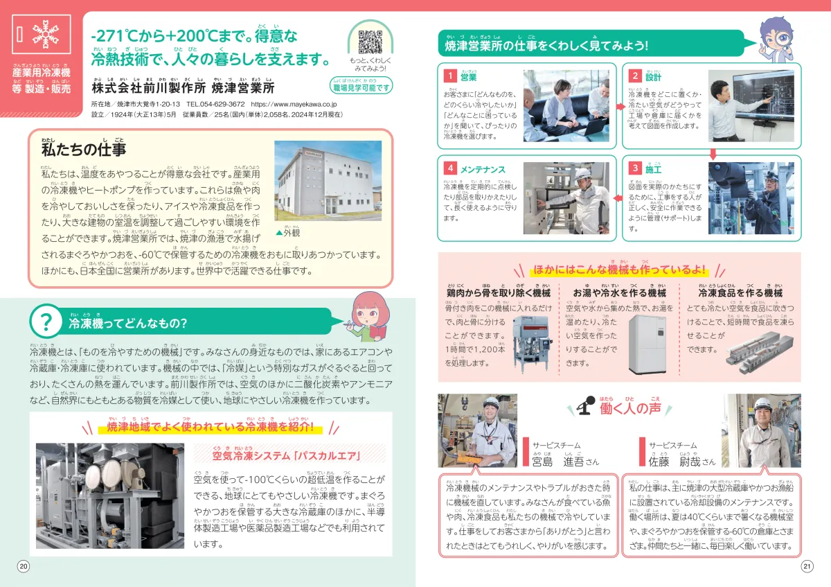 この度、株式会社前川製作所が「小学生のためのお仕事ノート 焼津市」版に掲載されることを発表しました。前川製作所は東京都江東区に本社を置く企業で、世界的に有名な産業用冷凍機を含む多種多様な産業機械の製造・販売を行っています。そのシェアはなんと世界の40%以上を誇り、特に冷凍機分野での実績は目を見張るものがあります。