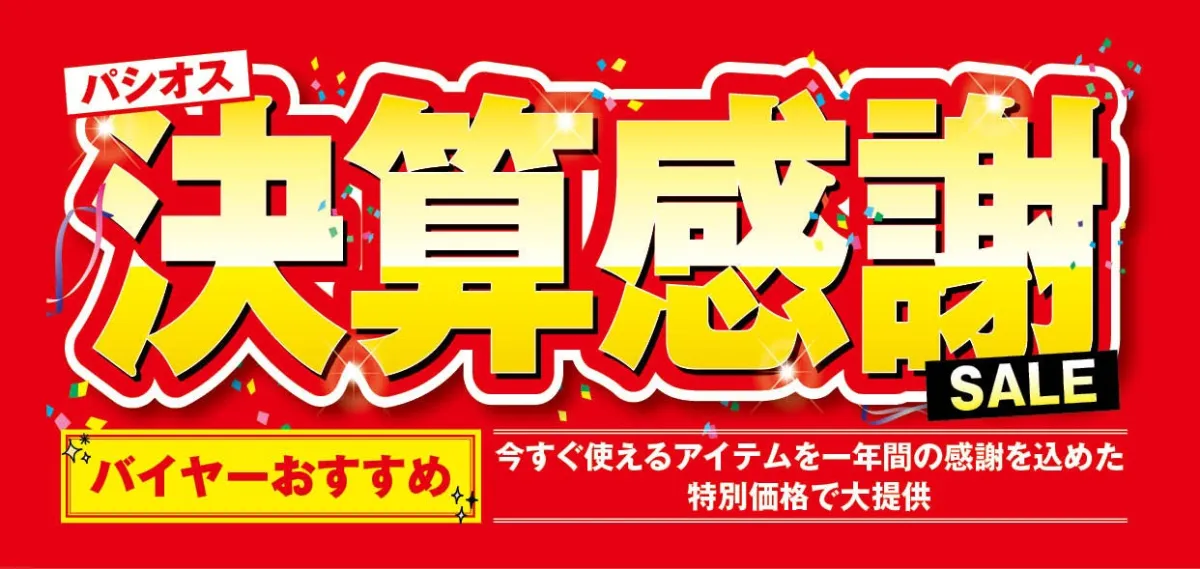 ファッションプラザパシオスの決算感謝SALEは、コストパフォーマンス抜群のアイテムが多数取り揃えられる貴重な機会です。この機会に、ファミリーでのお買い物を楽しんでください。もちろん、友達同士や自分用にもピッタリです。待望のセールをお見逃しなく!