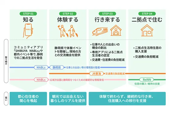 特に2026年度からは、東急不動産が運営するコミュニティアプリ『SHIBUYA MABLs(渋谷マブルス)』を通じて、広域渋谷圏と静岡県を結ぶ情報発信が行われます。このアプリは、ユーザーが静岡での仕事や人との出会いを体験できるプラットフォームとして機能する予定です。