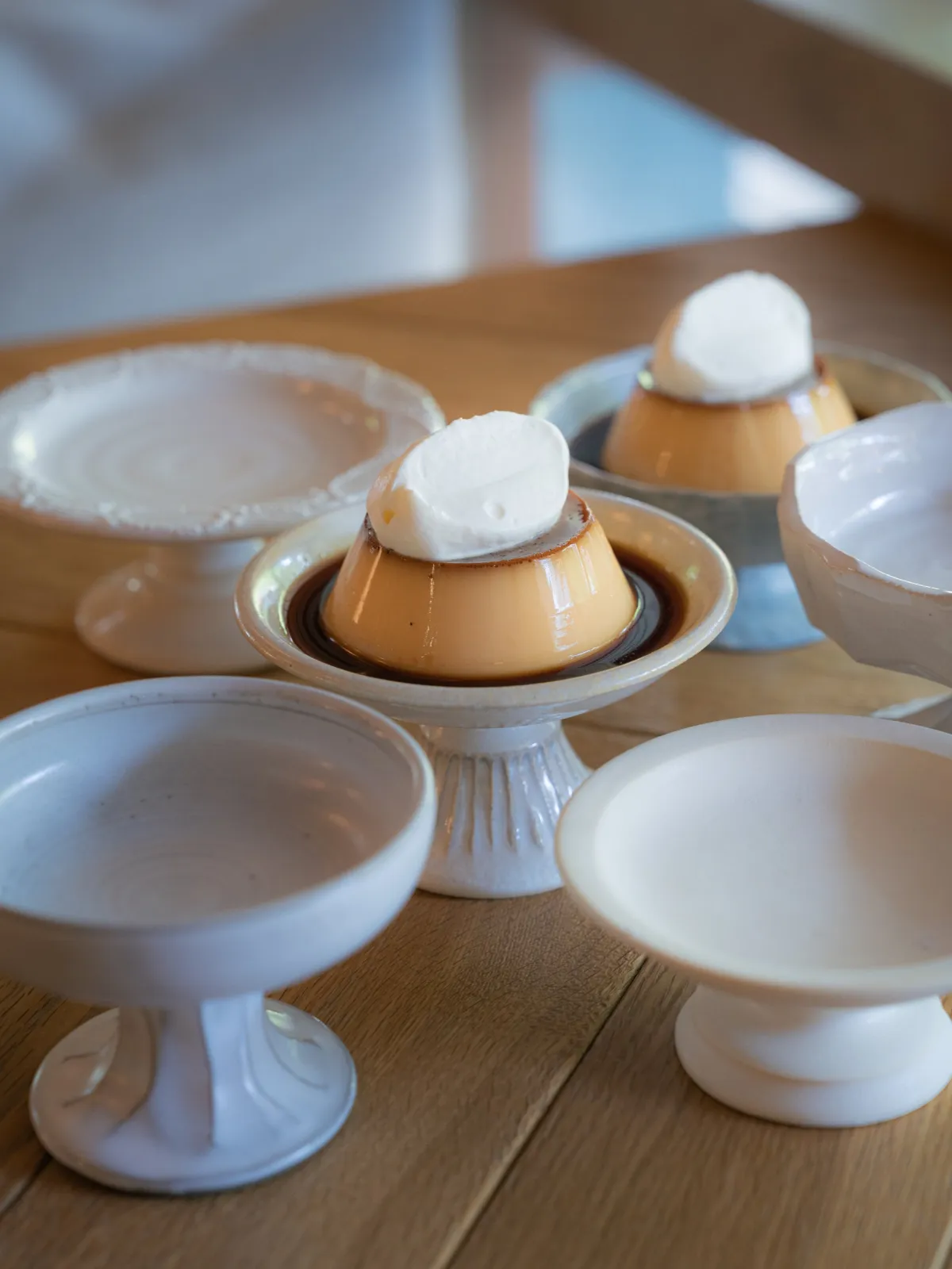 さらに注目すべきは、このプリンが「駿府の工房 匠宿」の陶芸工房「工房 火と土」で制作された器に盛られている点です。選考を経て厳選された美しい器が、プリンの味わいを引き立てると同時に、視覚的な楽しみも提供してくれます。ひとつひとつ異なる表情を持つ器が、スイーツという贅沢な一皿を特別なものにしてくれます。