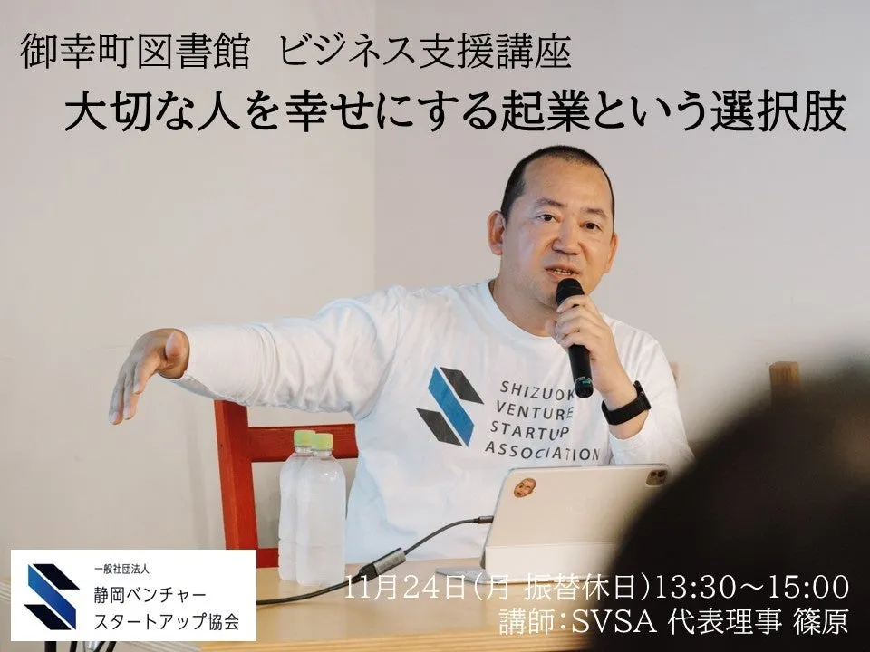 静岡市立御幸町図書館で、注目すべきビジネス支援講座が開催されます。「大切な人を幸せにする起業という選択肢」と題されたこの講座は、起業や副業に興味がある市民や学生のために企画されました。講師を務めるのは、一般社団法人静岡ベンチャースタートアップ協会の代表理事・篠原豊氏です。
