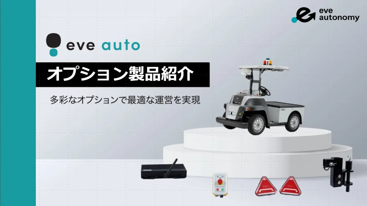 静岡県磐田市の企業、株式会社eve autonomyが提供する屋内外対応の無人搬送サービス「eve auto®」。このたび、同社は「eve auto」で使用できる各種オプション品をまとめた資料を公式サイトにて公開しました。この資料は多様なオプションを一目で把握できる内容となっており、導入を検討している企業にとっての強力なサポートとなります。