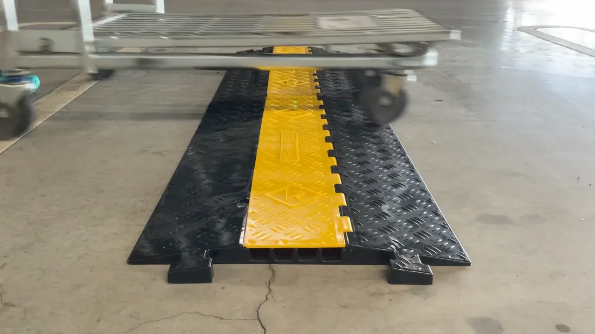 従来のケーブルプロテクターの多くは、太いケーブルを収納するために高さがあり、通行の妨げとなっていました。特に、台車や車イス、ベビーカーなどが通行するイベント会場や公共施設では、その高さが問題視されていました。しかし、こうじばんの新製品は、直径20mmまでのケーブルに対応しつつ、本体の高さをわずか32mmに抑えることで、スムーズな通行を実現しています。これにより、まるでバリアフリーデザインのように、誰もが安心して使えるプロテクターとなっています。